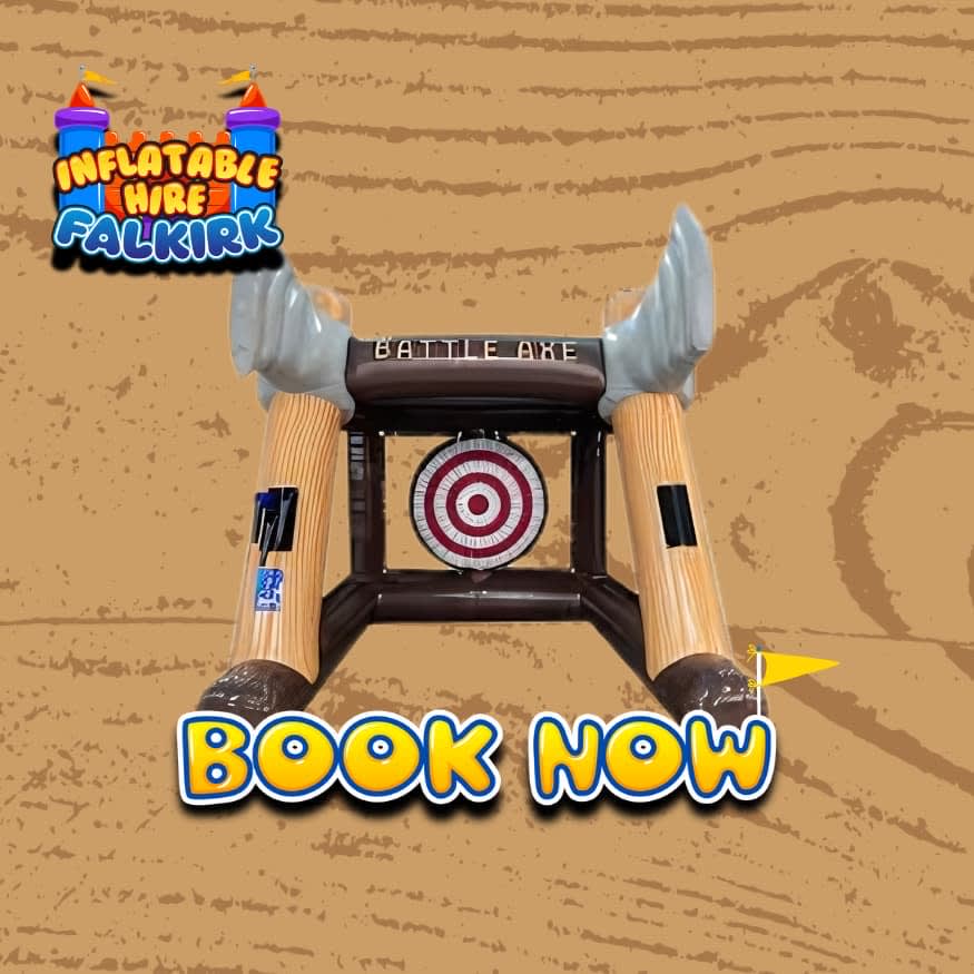 Turn your event into a memorable adventure with inflatable axe throwing. Contact us today to learn more about our inflatable games hire in Falkirk and surrounding areas and let’s make your next event unforgettable! 🎊